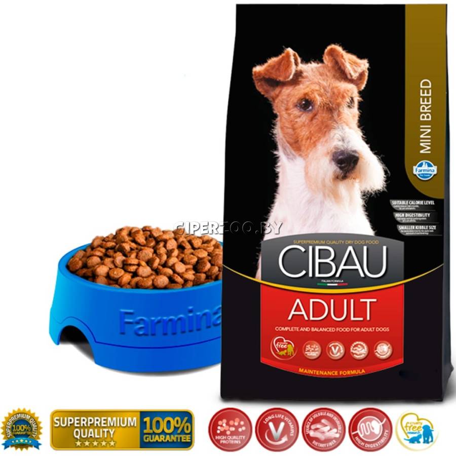Farmina Cibau Adult Mini - сбалансированный сухой корм для взрослых собак, содержащий витамины, минералы и другие вещества, необходимые для здоровья вашей собаки. Супер премиум корма для собак линии Cibau содержит все необходимые питательные вещества для обеспечения потребностей собак разных пород и возрастов, и обладает следующими характеристиками: В качестве основных источников белка содержит ингредиенты животного происхождения и полностью обеспечивают потребности в белке и незаменимых аминокислотах. Рыбий жир содержит оптимальный баланс Омега-3/Омега-6 улучшающих состояние шерсти и обладающих противовоспалительными свойствами. Легко усваиваемые углеводы – рис и кукуруза - обеспечивают организм необходимым количеством энергии. Усваиваемость продукта составляет 85%, что означает оптимальное соотношение между потреблением корма и количеством фекалий. Не содержит генетически модифицированных ингредиентов и искусственных консервантов.