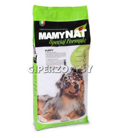 MamyNat Dog Puppy (курица, говядина), 20 кг - это полноценный и сбалансированный корм, созданный для роста щенков. Подходит для щенков от 2 до 12 месяцев.