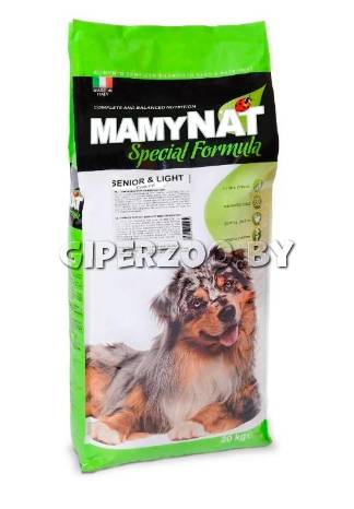 Cбалансированный набор витаминов и минералов, свекольный жом в качестве источника клетчатки и низкое содержание жиров для снижения потребления калорий, всё это делает MamyNat Dog Senior & Light подходящим выбором для пожилых собак или собак с избыточным весом.
