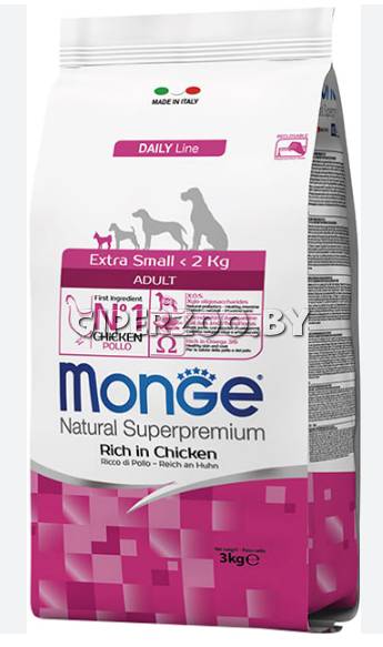 Monge Dog Daily Extra Small Adult (Курица) - это полноценный сбалансированный рацион для взрослых собак миниатюрных пород с нормальной физической активностью.