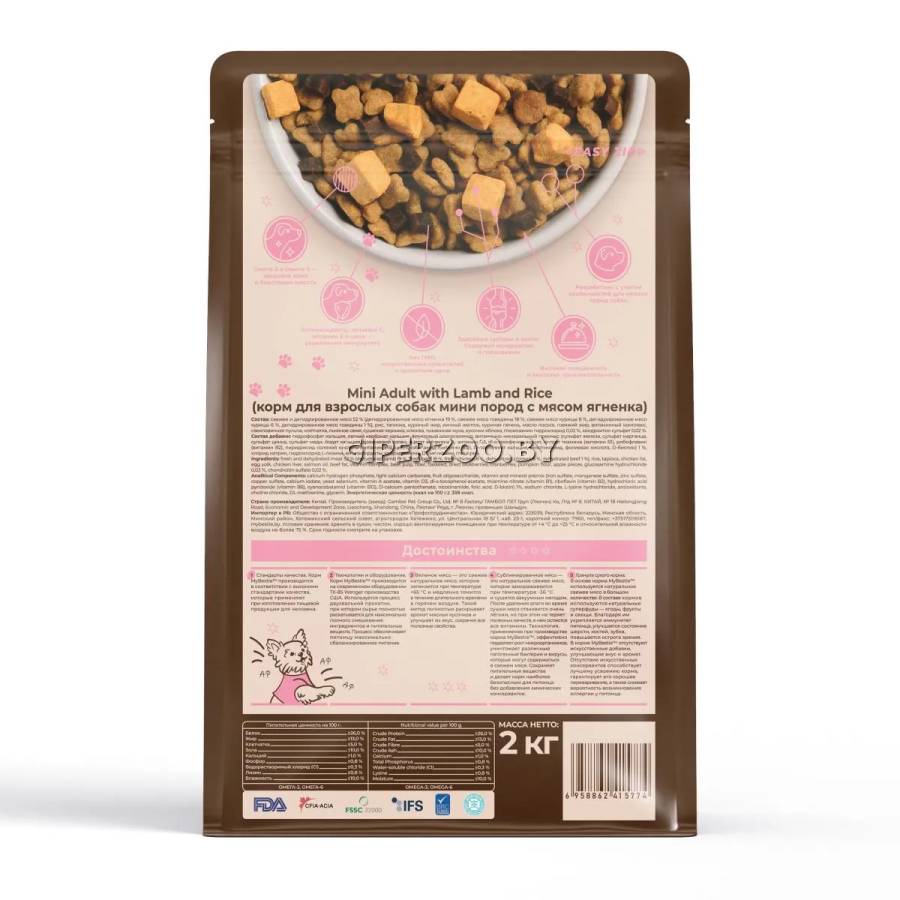 Ингредиенты Свежее и дегидрированное мясо 52% (дегидрированное мясо ягненка 19%, свежее мясо говядины 18%, свежее мясо курицы 8%, дегидрированное мясо курицы 6%, дегидрированное мясо говядины 1 %), рис, тапиока, куриный жир, яичный желток, куриная печень, масло лосося, говяжий жир, витаминный комплекс, свекловичная пульпа, клетчатка, льняное семя, сушеная черника, клюква, тыквенная мука, кусочки яблока, глюкозамин гидрохлорид 0,02%,хондроитин сульфат 0,02%. Добавки Гидрофосфат кальция, легкий карбонат кальция, фруктовый олигосахарид, витаминно - минеральный премикс (сульфат железа, сульфат марганца, сульфат цинка, сульфат меди, йодат кальция, дрожжевой селен, ацетат витамина А, витамин D3, dl - α - токофенол - ацетат, нитрат тиамина (витамин В1), рибофлавин (витамин В2), пиридоксид соляной кислоты (витамин В6), цианокобаламид (витамин В12), D - пантотенат кальция, никотинамид, фолиевая кислота, D-биотин)) 1%, хлорид натрия, гидрохлорид L-лизина, антиоксиданты, хлорид холина, DL-метионин, глицерин. Аналитический состав Белок- 26%, Жир- 13%, Клетчатка- 5%, Зола- 10%, Кальций- 1%, Фосфор- 0.8%, Водорастворимый хлорид- 0.3%, Лизин- 0.8%, Влажность- 10%.