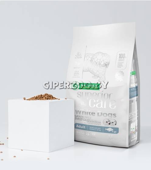 белая рыба 41% (сушеная и измельченная), сушеный картофель, батат, горох, жир птицы, мука из криля (мин. 4%), жом сахарной свеклы, лососевое масло, динамически микронизированный клиноптилолит (1%), семя льнa, фруктоолигосахариды, экстракт юкки, зеленый чай, сушеная календула (источник лютеина).