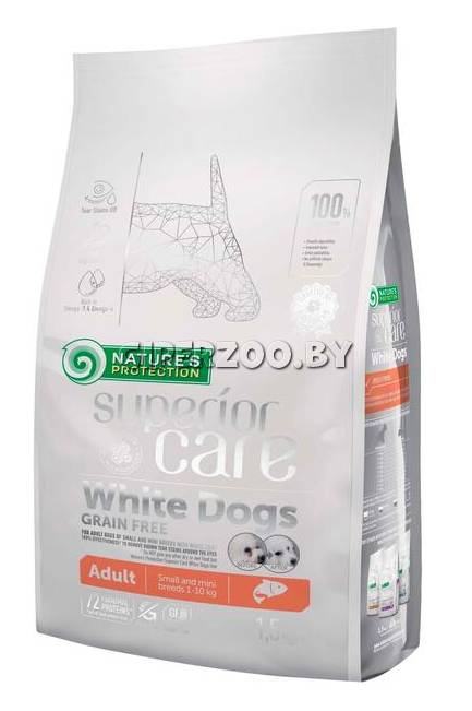 Состав: лосось 40% (сушеный и измельченный), сушеный картофель, батат, жир птицы, горох, жом сахарной свеклы, лососевое масло, дикальций фосфат, динамически микронизированный клиноптилолит (1%), семя льнa, тапиока, фруктоолигосахариды, экстракт юкки, зелёный чай, сушеная клюква, сушеная календула (источник лютеина).