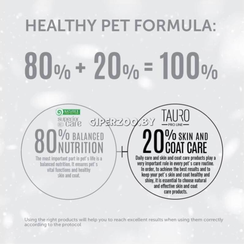 - Сияющая шерсть и кожа: Богатый состав жирных кислот и витаминов группы B делает шерсть мягкой, густой и ослепительно белой.