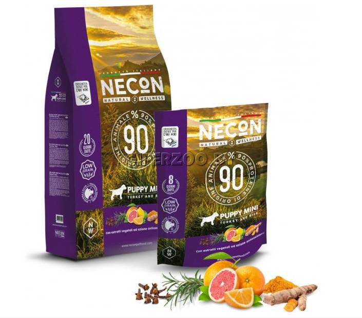 Necon Natural Wellness Puppy Mini (Индейка и рис) — это корм суперпремиум-класса с низким содержанием зерна для щенков мелких пород, в составе которого 29% индейки.