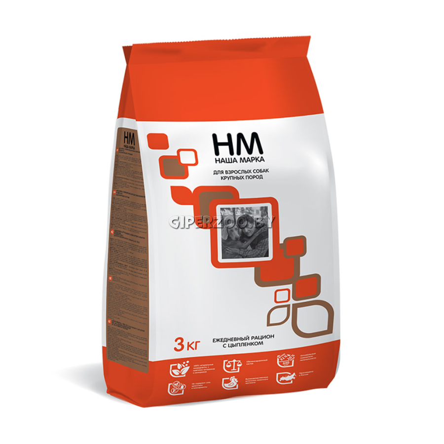 Наша Марка корм для взрослых собак крупных пород, 3 кг - это полноценный сухой корм премиум класса для взрослых собак крупных пород с цыпленком.