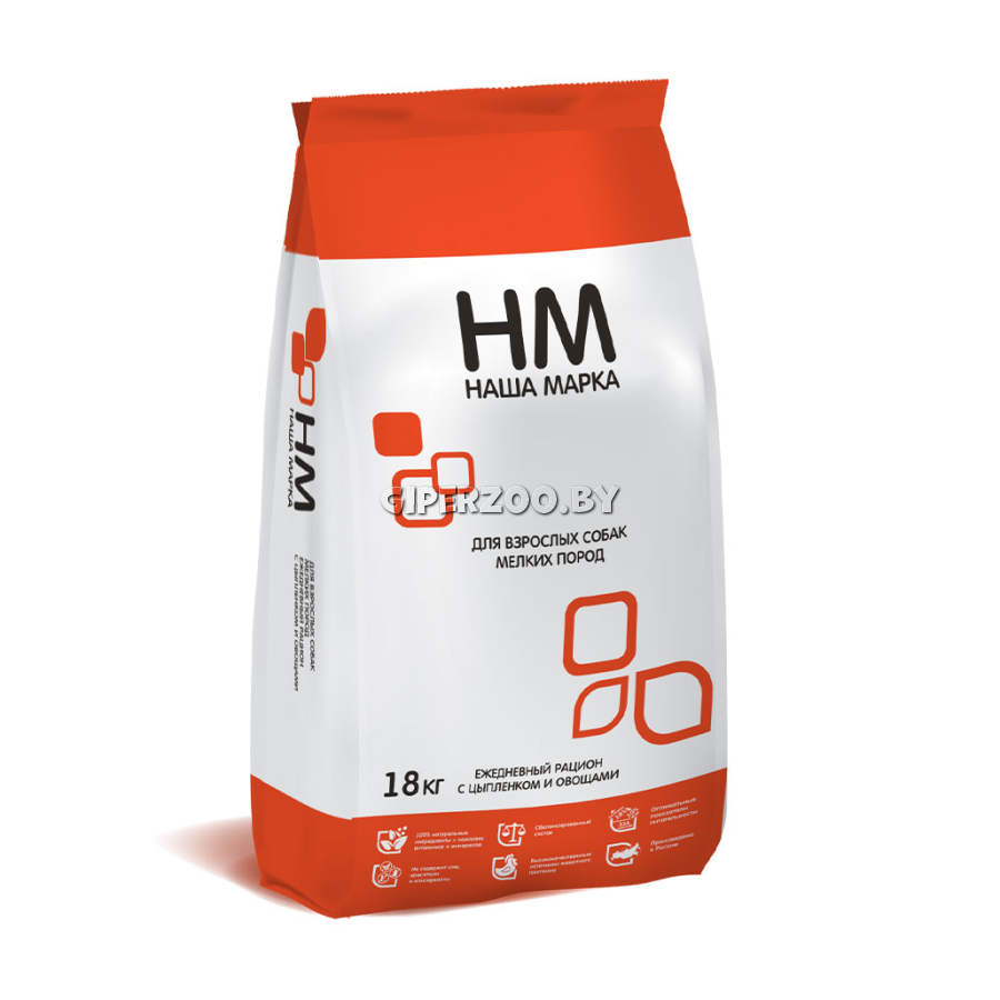 Наша Марка для взрослых собак мелких пород (цыпленок), 18 кг - это полноценный сухой корм премиум класса для взрослых собак мелких пород с цыпленком и овощами.