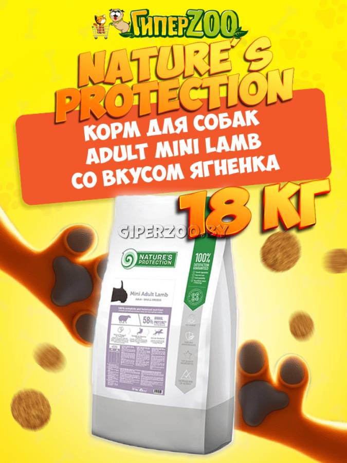 Nature’s Protection Adult Mini Lamb (Ягнёнок) — сухой корм для взрослых собак мелких пород, 18 кг