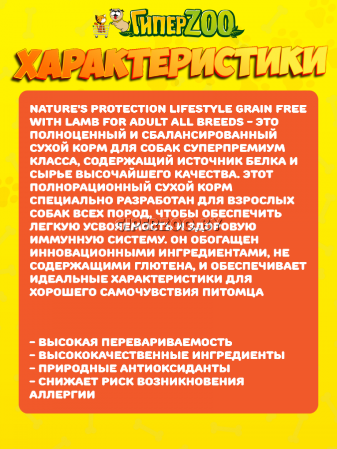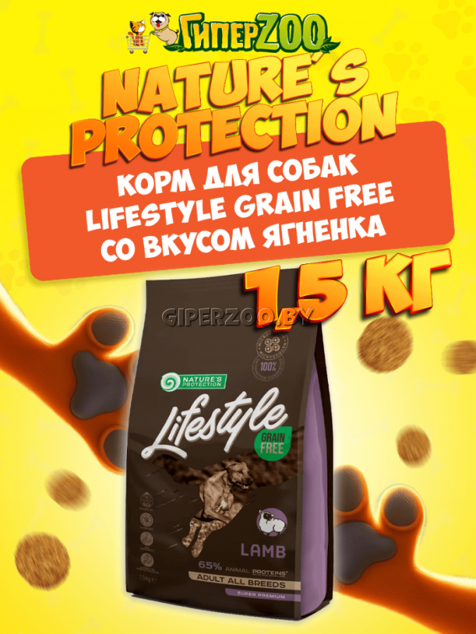 Nature's Protection Lifestyle Grain Free Lamb ( Натур Протекшн Лайфстайл Ягненок), 1,5 кг - полнорационный беззерновой корм для взрослых собак всех пород с ягненком.