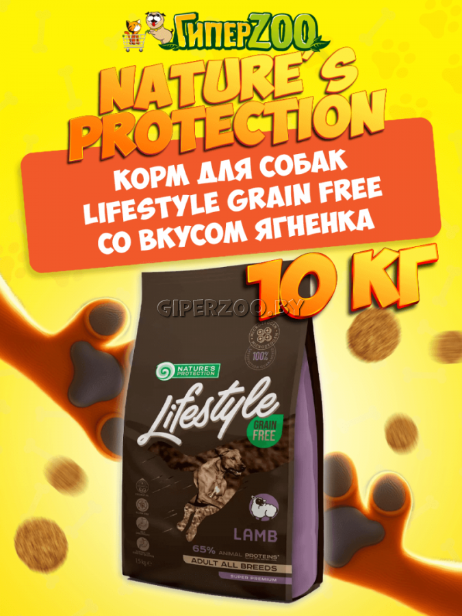 Nature's Protection Lifestyle Grain Free Lamb ( Натур Протекшн Лайфстайл Ягненок), 10 кг - полнорационный беззерновой корм для взрослых собак всех пород с ягненком.
