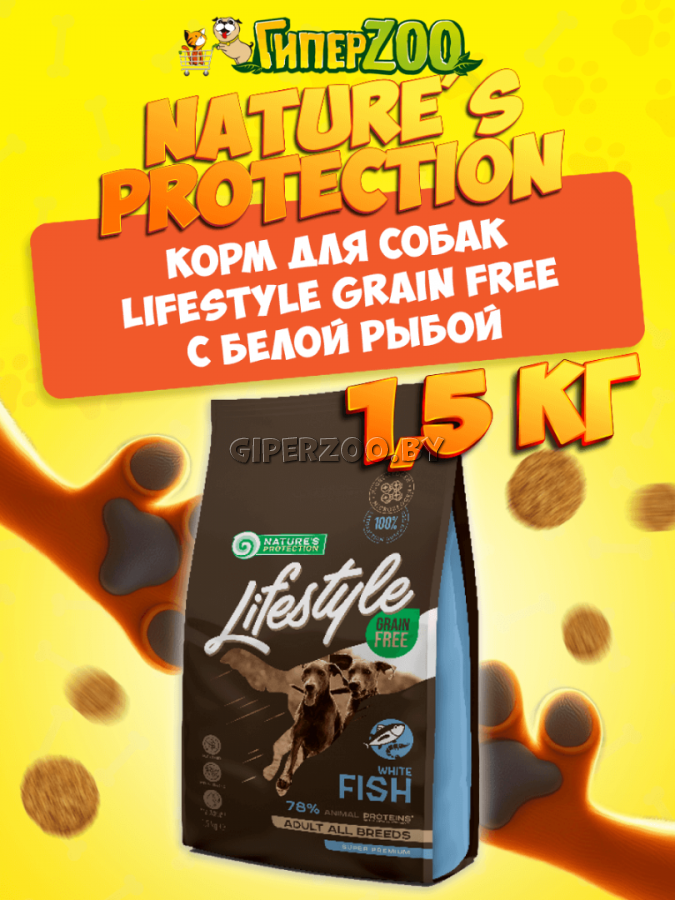 Nature's Protection Lifestyle White Fish (рыба), 1,5 кг - корм для взрослых собак любых пород.
