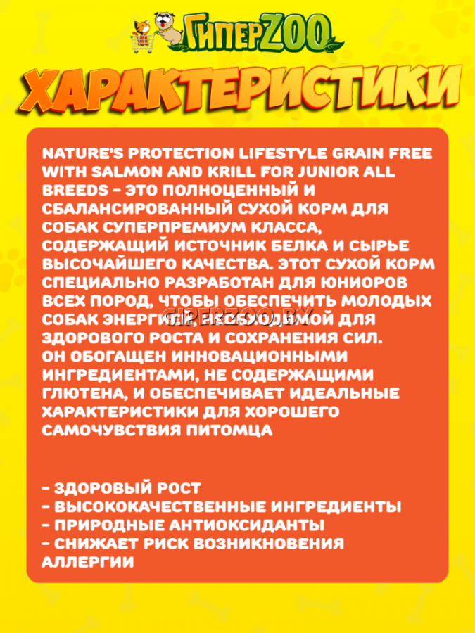 Nature's Protection Lifestyle Junior (Натур Протекшн Лайфстайл Джуниор), 10 кг - полнорационный беззерновой корм для молодых (от 3 до 12 мес.) собак всех пород с крилем.