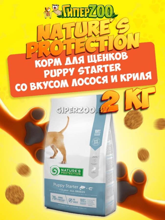 Nature's Protection Puppy Starter Salmon with krill (лосось, криль), 2 кг - полноценный сбалансированный корм для щенков всех пород от 4 недель. Для беременных и кормящих сук