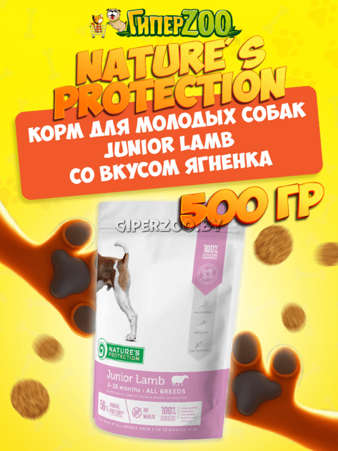 Nature's Protection Junior Lamb - это сухой корм, разработанный для растущих молодых собак (2-18 месяцев).