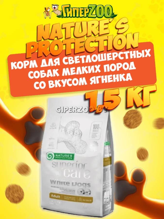 Nature’s Protection Superior Care White Dogs Small and Mini Breeds (ягненок), 1,5 кг - сухой корм для белых собак мелких и карликовых пород 1-10 кг