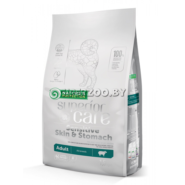 Nature's Protection Superior Care Sensitive Skin&Stomach Lamb (ягненок), 10 кг - полноценный сбалансированный корм для взрослых собак всех пород. Помогает избежать проблем с кишечником и состоянием кожи