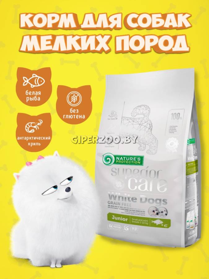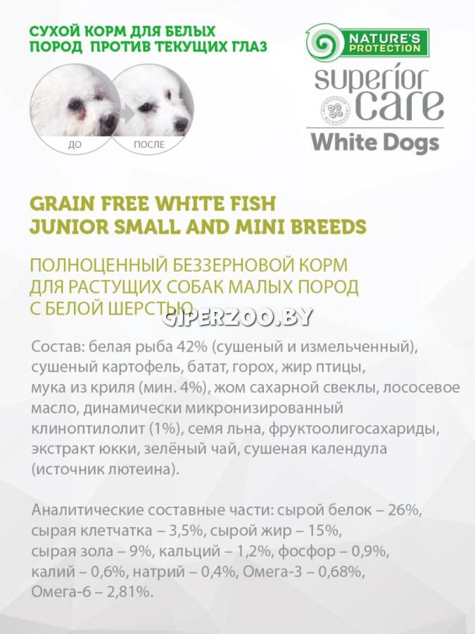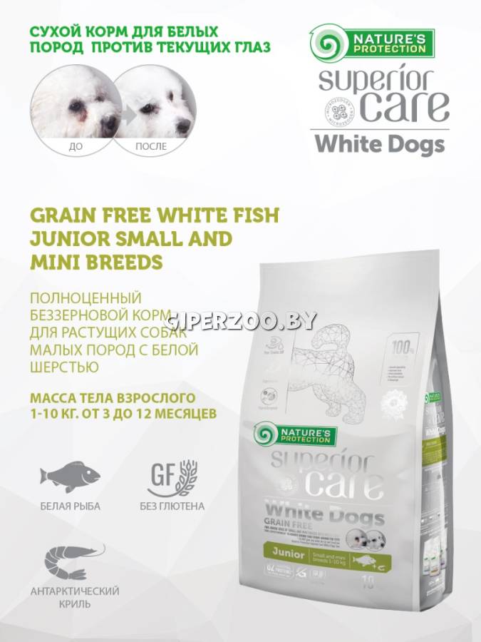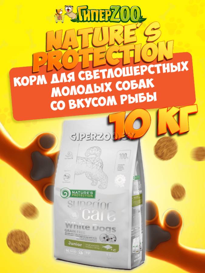 Nature's Protection Superior Care White Dogs Junior Grain Free White Fish (Натур Протекшн Джуниор для белых собак с рыбой), 10 кг - полноценный беззерновой корм для растущих собак малых пород с белой рыбой (масса тела взрослого 1-10 кг)