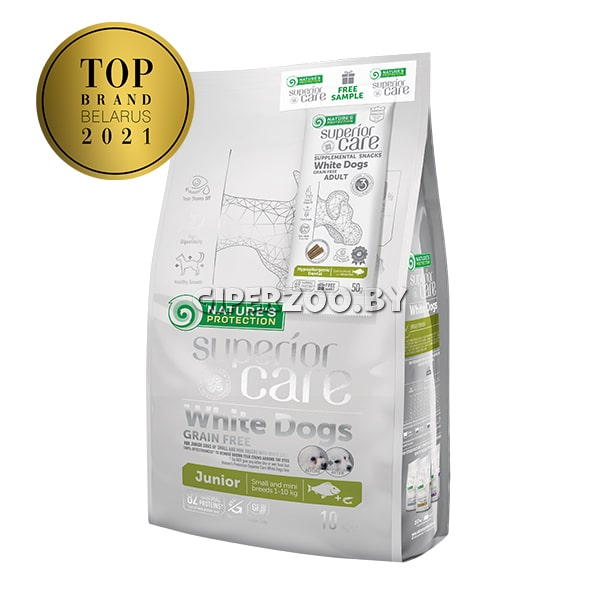 Nature's Protection SC White Dogs White Fish (рыба), 1,5 кг + лакомство - сухой корм для белых собак мелких пород с белой шерстью 1,5 кг. Полнорационный беззерновой гипоаллергенный сухой корм с белой рыбой для белошерстных и светлошерстных взрослых собак малых и очень маленьких мини пород (1-10 кг) от 1 года и старше Natures Protection (Натур Протекшн). Имеет в составе компоненты, которые помогают поддерживать прозрачность слезной жидкости, благодаря чему, темные загрязнения заметно уменьшаются.