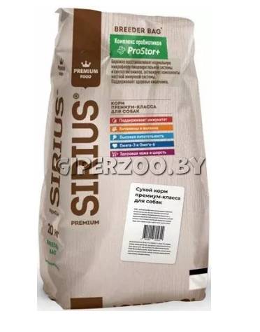 SIRIUS Adult (мясной рацион), 2кг - полнорационный сухой корм премиум класса для полноценного ежедневного рациона взрослых собак.
