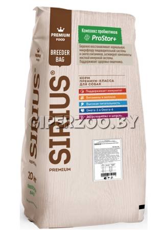 SIRIUS Adult (Говядина с овощами), 20 кг - сухой корм премиум класса для полноценного ежедневного рациона взрослых собак.