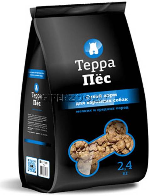Терра Пёс для взрослых собак мелких и средних пород 2,4 кг - корм класса стандарт. Состав этого корма удовлетворяет все потребности домашних питомцев, т.к. содержит натуральные ингредиенты, а так же оптимальное количество витаминов и минералов, что, в свою очередь, необходимо животному для поддержания прекрасной физической формы, формирования костной системы, шерстного покрова и иммунитета.
