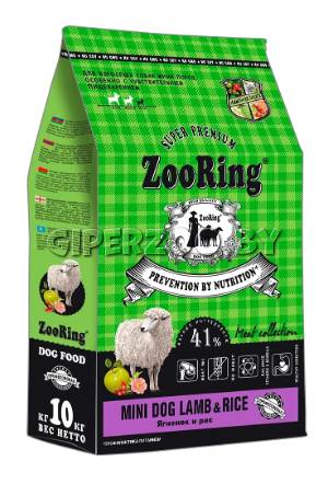 ZooRing Adult Mini Dog (Ягненок, рис) — полнорационный сухой корм для взрослых собак мини пород, особенно с чувствительным пищеварением.