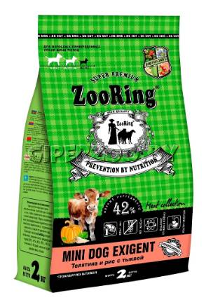 ZooRing Mini Dog Exigent (Телятина и рис с тыквой) — полнорационный сухой корм для взрослых привередливых собак мини пород.