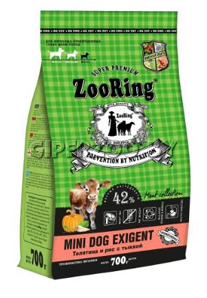 ZooRing Mini Dog Exigent (Телятина и рис с тыквой) — полнорационный сухой корм для взрослых привередливых собак мини пород.