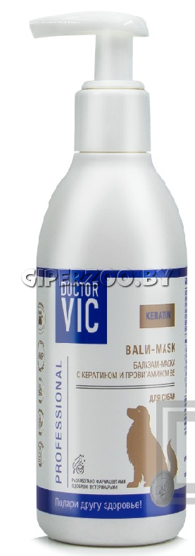 Doctor VIC (Доктор Вик) Бальзам-маска с кератином и провитамином В5 для собак направлена на улучшение состояния кожного покрова и восстановление структуры шерсти собаки. Бальзам-маска увлажняет и питает шерсть, придаёт ей блеск, облегчает расчёсывание и предотвращает спутывание.