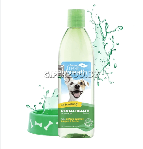 Добавка в воду TropiСlean для собак Свежее дыхание, 473 мл - с помощью TropiClean Fresh Breath Dental Health Solution собаки могут получить пользу от ежедневной защиты от зубного налета и зубного камня, просто выпивая воду из миски.