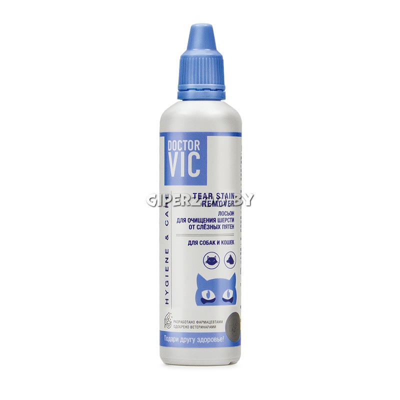 Состав и форма выпуска: Экстракт алоэ вера, оптические отбеливатели. Показания: Лосьон предназначен для мягкого очищения шерсти животных со светлой и белой шерстью от слез, слюны и других загрязнений. Мягко очищает шерсть вокруг глаз и пасти от загрязнений, которые наиболее заметны у животных со светлой и белой шерстью, не вызывает раздражения. Применение: Нанести лосьон на ватный диск с помощью дозатора. Тщательно протереть потемневшие от загрязнений области шерсти под глазами (пастью). Промыть водой, высушить сухим ватным диском или полотенцем. При застарелых пятнах процедуру повторять ежедневно до их полного исчезновения. Регулярное использование средства предотвращает образование слезных дорожек в дальнейшем. Избегать попадания в глаза.