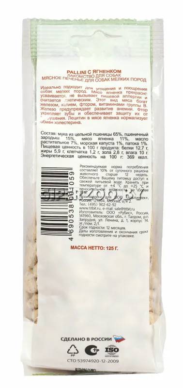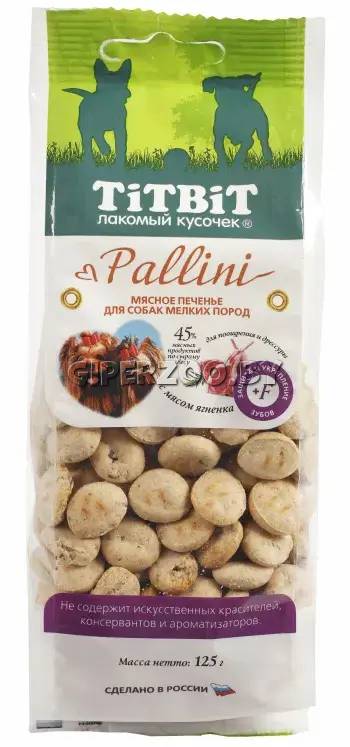 TiTBiT Печенье Pallini (ягненок), 125 гр – это источник гипоаллергенного, высококачественного протеина животного происхождения, который легко усваивается и необходим при заживлении ран и переломах костей. Аромат баранины очень нравится собакам, поэтому лакомство удобно применять для дрессуры. Вещества, такие как цинк, витамин В12 и железо (2,6 мг/100г), благотворно влияют на умственную деятельность животного. В мясе ягненка содержатся так же витамин РР(5,4 мг/100г), который участвует в усвоении белков, жиров и углеводов, поступающих извне.