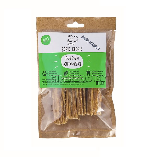 Лакомства для собак "Бобик-Снобик" Кишки говяжьи сушеные, 35 г. — натуральное сушеное лакомство для собак, богатое витаминами и минералами.
