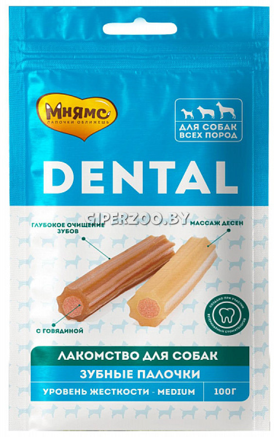 Мнямс DENTAL лакомство для собак Зубные палочки (говядина), 100 гр