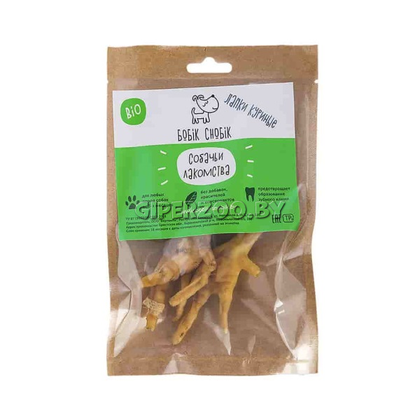 Лакомства для собак "Бобик-Снобик" Лапки куриные сушеные, 2 шт. — полезное дополнение к основному рациону собаки.