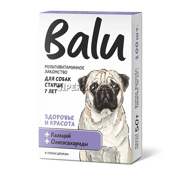 Мультивитаминное Лакомство BALU для собак старше 7 лет «Здоровье и красота » (кальций и олигосахариды) – это вкусное и полезное лакомство, которое дополнит ежедневный рацион вашего питомца.