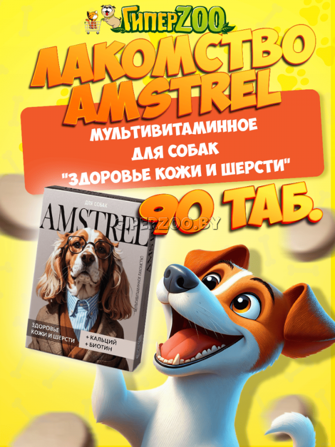 Лакомство мультивитаминное Amstrel для собак "Здоровье кожи и шерсти", 90 таб.