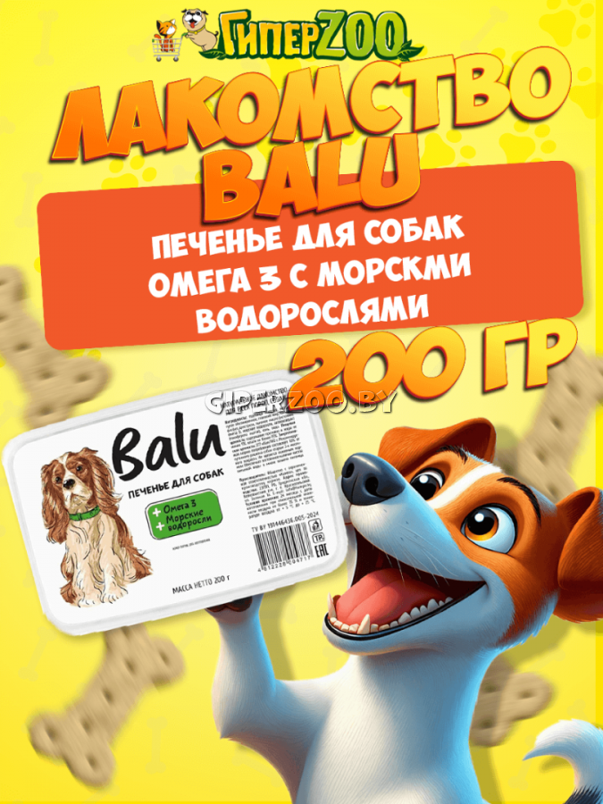 BALU Печенье для собак всех пород с Омега 3 и морскми водорослями, 200 гр