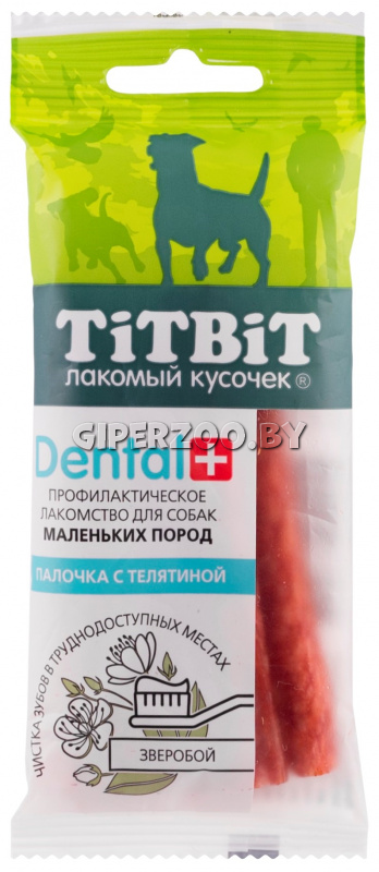 Профилактическое лакомство DENTAL+ Палочка с телятиной для собак маленьких пород содержит зверобой, который обладает противовоспалительными свойствами. Пористая структура палочки способствует эффективной чистке зубов собаки в труднодоступных местах.