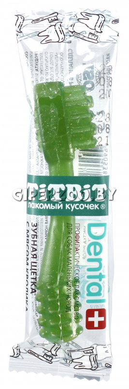 Профилактическое лакомство Dental+ Зубная щетка с мясом кролика для собак маленьких пород содержит мяту, которая оказывает антибактериальное воздействие. Ежедневное употребление этого лакомства способствует свежести дыхания, снятию мягкого зубного налета и снижению образования зубного камня у собаки