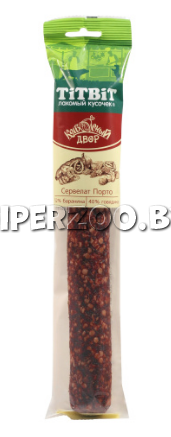 Колбасный двор для собак TitBit – это высококачественные мясные деликатесы, которые отлично подходят в качестве поощрения животного или просто побаловать своего любимца. Содержание мяса и мясных субпродуктов 92%. Не содержат соль и искусственных компонентов.
