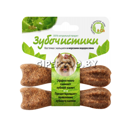 Лакомство для собак мелких пород ЗУБОЧИСТИКИ морские водоросли 2x18 г – лучшие лакомства для чистки зубов, отлично снимают зубной налет, предотвращают появление зубного камня, и борются с болезнями десен. Запатетованная структура позволяет сделать чистку максимально эффективной, сопоставимой с механической. Существенное содержание кальция укрепляет кости и зубы собаки. 100% натуральный состав и отсутствие любых искусственных ингредиентов способствует легкому усваиванию. Подходит для взрослых собак менее 10 кг.