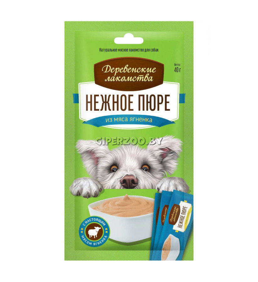 Деревенские лакомства пюре из ягненка. Нежное пюре — изысканный десерт для собак. Изготовлено исключительно из натуральных ингредиентов. Собаки очень любят это нежное угощение с ярким вкусом мяса и не отойдут от миски, пока не слижут всё до капли. Удобная упаковка позволяет легко выложить пюре в миску или кормить питомца прямо из пачки. Лакомство будет интересно и полезно для взрослых собак всех пород и может стать приятным дополнением к основному корму.
