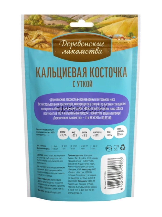 Деревенские лакомства косточки кальциевая для щенков (утка), 90 гр - лучшее для вашего щенка — молочная косточка, которая обогащена кальцием, так необходимым для формирования крепких костей и зубов! Мясо утки деликатно дополняет вкусовую палитру.