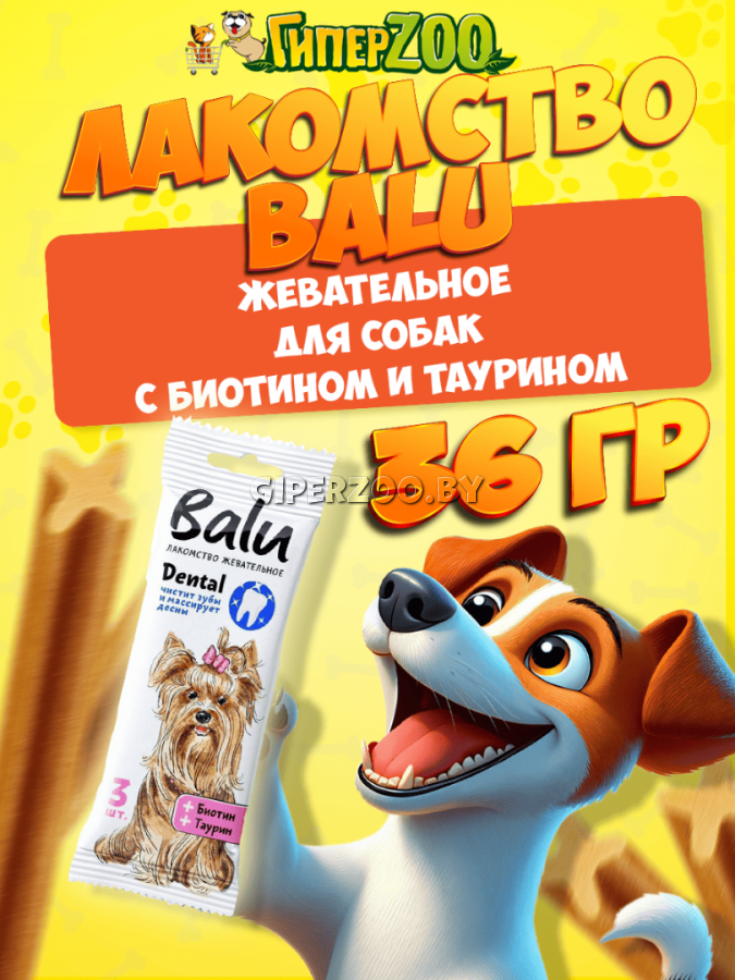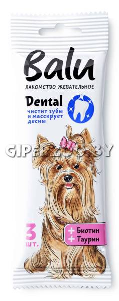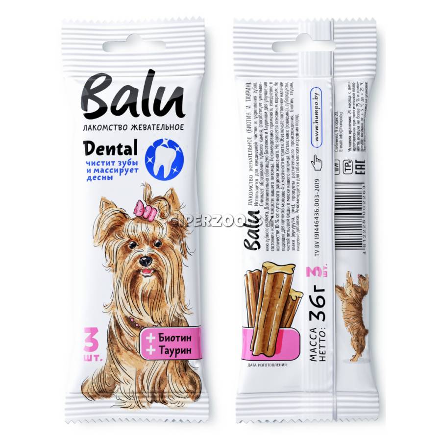 Лакомство жевательное для собак BALU с биотином и таурином, 36 гр. используется для ежедневной чистки и укрепления зубов.