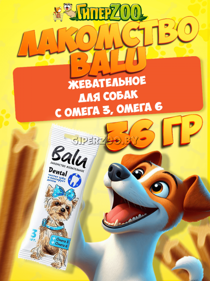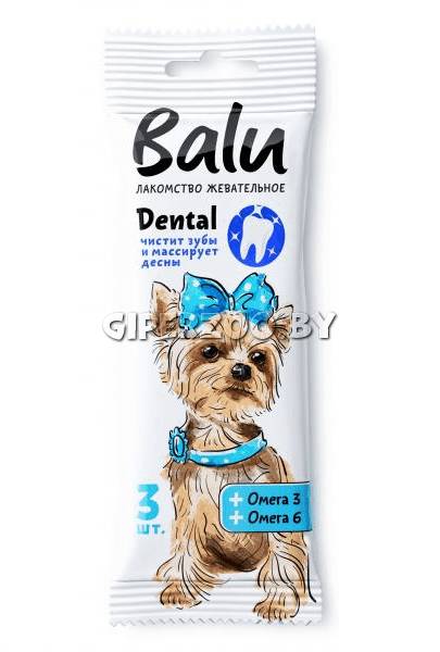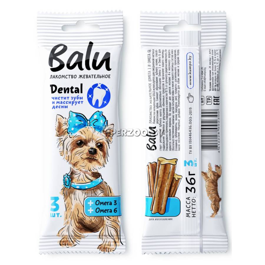 Лакомство жевательное для собак BALU с омега 3, омега 6, 36 гр - используется для ежедневной чистки и укрепления зубов.
