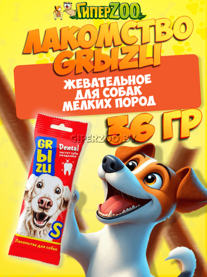 Лакомство GRЫZLI жевательное для собак мелких пород, р-р S, 36гр, 3шт — жевательное лакомство для собак крупных пород.