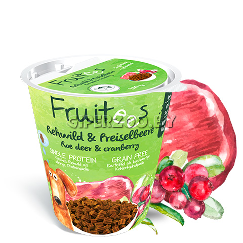 Лакомство Бош Фруттис с косулей и брусникой, 200 гр - это вкусный, сочный корм(в форме звездочек) с минимумом 20% свежего мяса птицы; он замечательно подойдёт вашему питомцу в качестве вкусной и полезной награды во время тренировки или любого другого случая. Брусники обеспечивают естественное антиоксидантное действие.