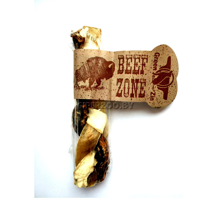 Лакомство для собак GreenQZin Косичка из сыромятной говяжей кожи и мяса