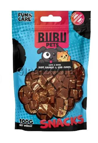 Bubu Pets Косточки из кролика и трески, мягкие – натуральное лакомство для собак всех пород и кошек.